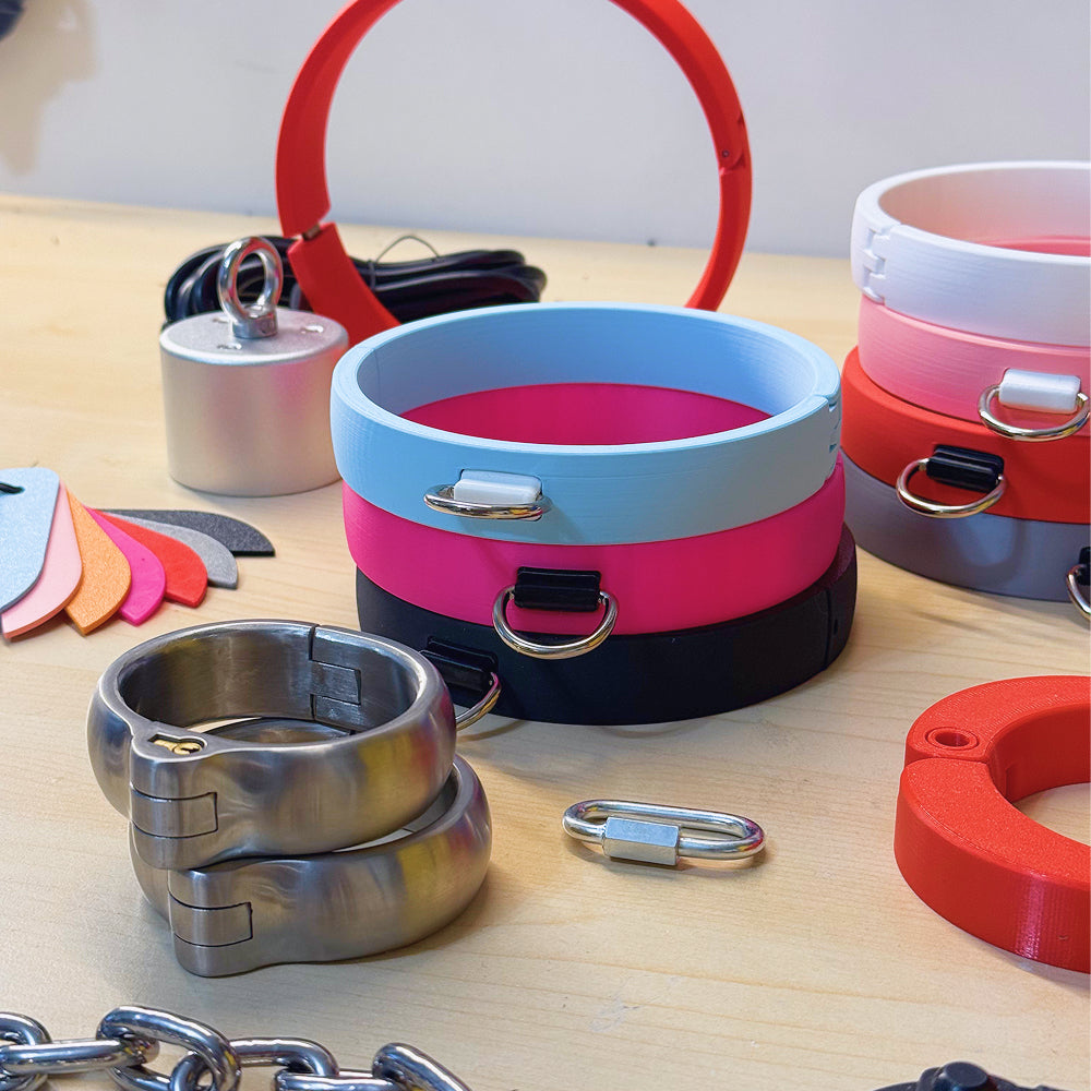 Precise measuring is at the core of AoB. Our 3D-printed cuffs and collars are crafted to your exact size: uniquely yours, perfectly fitted, and designed for both comfort and security. This level of personalization is unique to AoB, letting you experience gear that truly fits your body and your ritual.